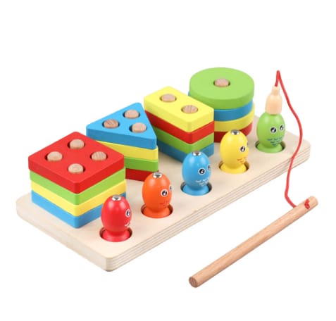 Wooden Puzzle Sorting Toy for Children 2-In-1 Kids Fishing Game Educational Shape Sorter Puzzle Sorting Game Beech for Kids